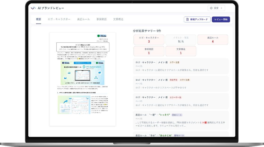 プレスリリース・採用記事・noteなどの対外広報物のレビューに。